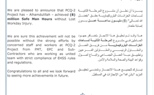 日前,我公司收到沙特項目SABIC EPCM副總裁Basri先生的來函,祝賀成達公司總承包的SABIC PCQ-2罐區項目于2015年12月24日累計達到800萬安全人工時。